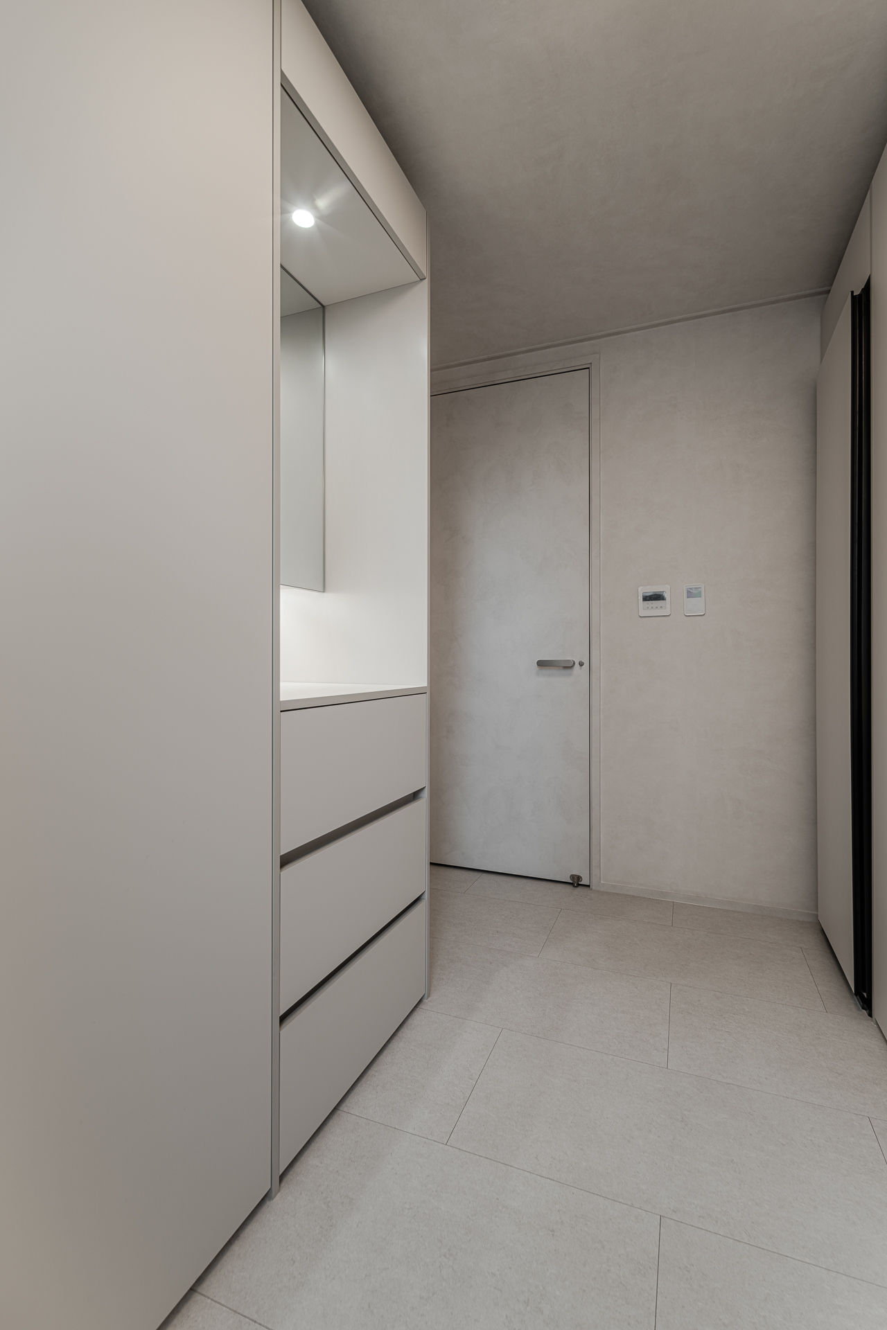 이번 계획의 핵심은 ‘Dissolve’라는 주제를 통해 외부와 내부가 자연스럽게 녹아드는 경험을 선사하고자 했다. 집에 들어서는 순간, 마치 작은 전시공간에 발을 들인 듯한 느낌과 이어서, 그 분위기가 자연스럽게 디졸브(dissolve)하듯 집 안의 깔끔하고 편안한 공간으로 이어지도록 설계했다.