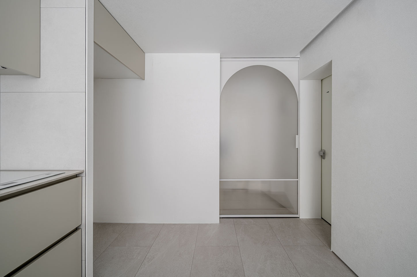 작은 주거 환경을 고려하여 공간을 구획하지 않고 여러 공간이 조금씩 겹치며 공간의 경계 단정짓지 않고 사용자의 판단에 따라 확장하여 사용하게 하고자 한다. 내가 서 있는 곳은 주방이자, 거실이며, 안방의 초입이면서, 반려견의 100m달리기 트랙인 식이다.